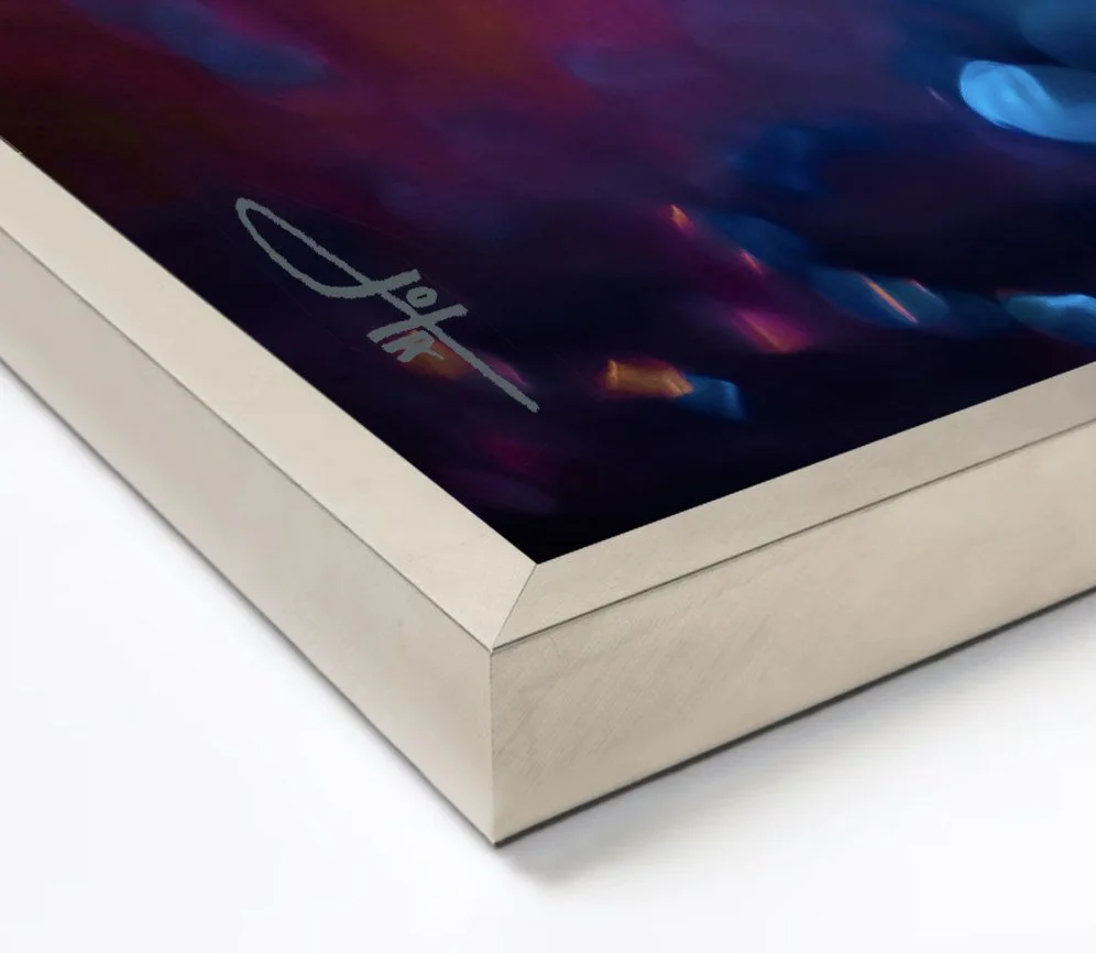 A modern Gallery Frame with a similar profile to the Gallery Frames provides a clean, sleek look with a contemporary metallic finish.
