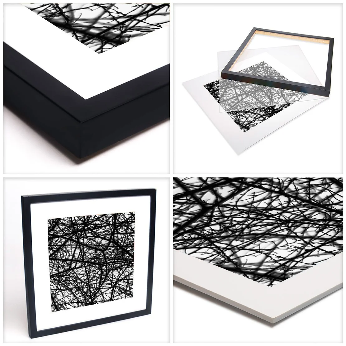 A modern Gallery Frame. Available in Black, this frame adds a clean, crisp look to any setting. It arrives with a glare-resistant acrylic ready to display on your walls.